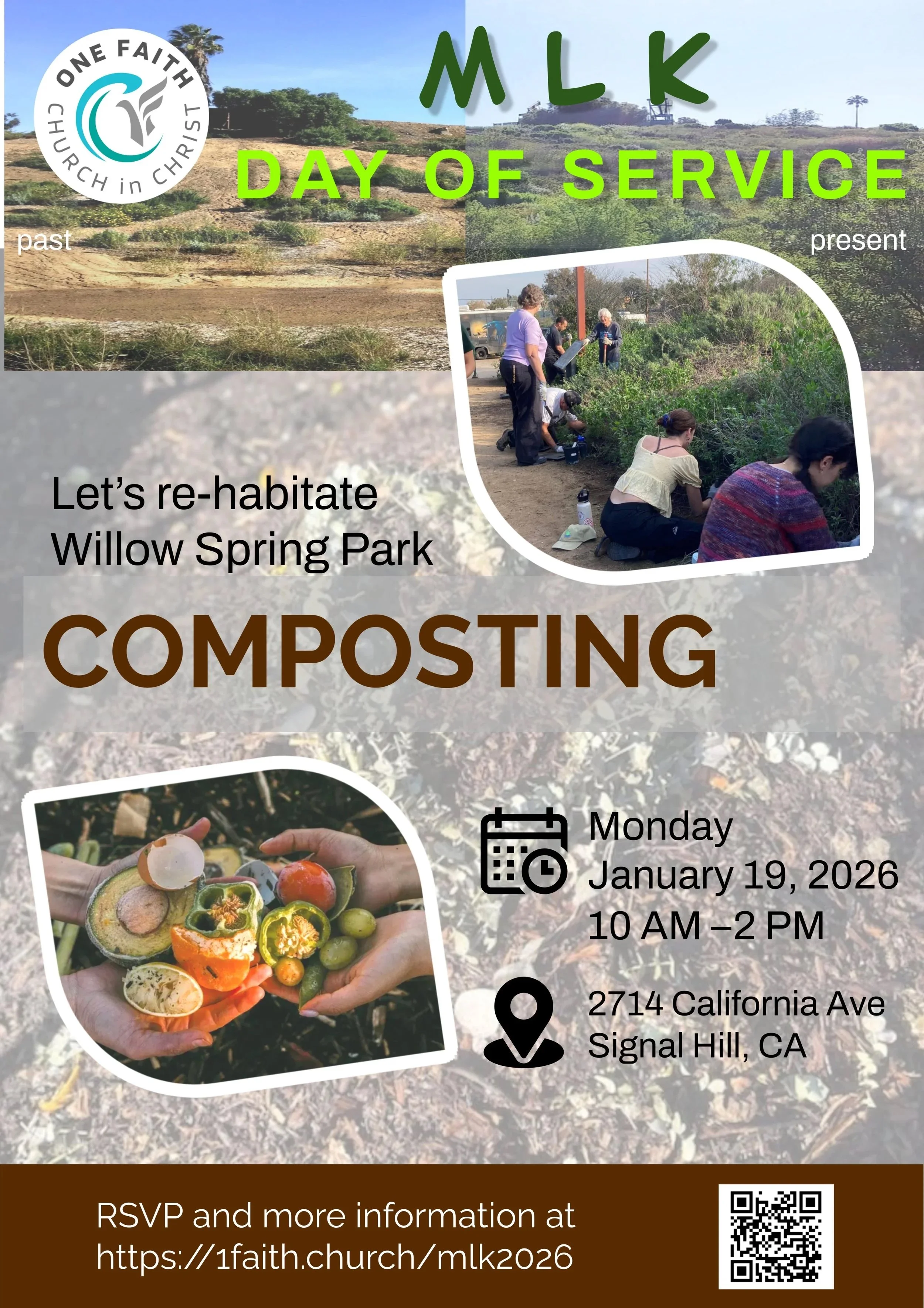 2) Sign up for the other opportunity at Willow Springs Park (register here) so at least your info is already in their system. Wendy and I are working on talking to the on-site coordinator to add the rest of our group and get the waiver for the compost volunteer project. If we are not able to reach anyone, I will visit them on Friday since they have a Composting 101 Workshop from 2-3p.